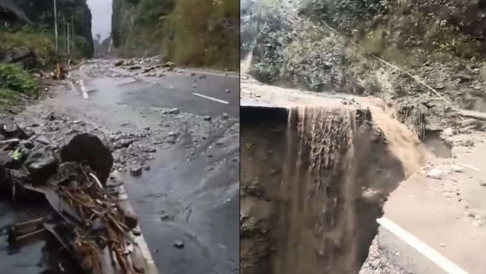 Arunachal Pradesh సోమవారం చోటు చేసుకున్న ఘోర ఘటన ఒకటి తృటిలో ప్రాణనష్టం లేకుండా ముగిసింది.పశ్చిమ కామెంగ్ జిల్లాలోని సప్పర్ క్యాంప్ సమీపంలో మధ్యాహ్న సమయంలో కొండచరియలు విరిగిపడి రెండు వాహనాలు నాశనమయ్యాయి.(Arunachal Pradesh) పెద్ద పెద్ద బండరాళ్లు కొండపై నుంచి ఒక్కసారిగా దూసుకొచ్చాయి.అప్పుడు ఆ దారిలో ప్రయాణిస్తున్న వాహనదారులు అప్రమత్తంగా వ్యవహరించడంతో మృత్యువును తప్పించుకున్నారు.ఈ ప్రమాదం తాలుకూ వీడియో సోషల్ మీడియాలో వైరల్గా మారింది.ఎంతో మంది ఈ దృశ్యాలను చూసి ఉలిక్కిపడ్డారు.వీడియోలో కనిపించిన ప్రకారంగా, రాళ్లు పడే శబ్దాన్ని గమనించిన డ్రైవర్లు వాహనాలను వేగంగా వెనక్కి తీసుకున్నారు.(Arunachal Pradesh)
